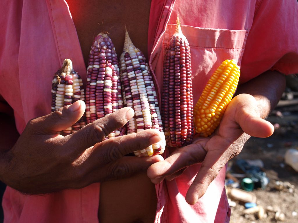 Mais ist das Grundnahrungsmittel in dem Genzentrum Mexiko und wurde hier kultiviert. Auf dem Landwirtschaftssystem Milpa wird neben anderen Pflanzen eine bunte Vielfalt von unterschiedlichen Maissorten verwendet. „Sin maíz no hay país“, das heißt ohne der Lebensgrundlage Mais gibt es kein Land. Die hohe genetische Diversität an Mais und vielen anderen Pflanzen gibt den Menschen die Möglichkeit, sich auf teilweise drastische klimatische Veränderungen anzupassen.