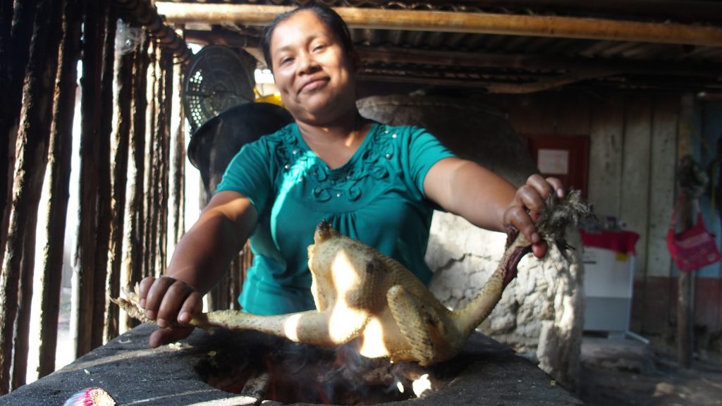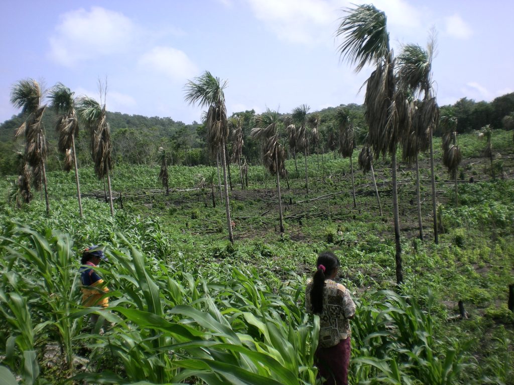 milpa: Landwirtschaftliche Mischkultur, die auf Mais, Bohnen und Kürbis basiert. Bei ihrer Ankunft wurden jeder Familie rund 40 ha Regenwald zugeteilt. Das Land wird durch Brandrodung urbar gemacht und kann dann mehrere Jahre bewirtschaftet werden. Durch die Asche werden Nährstoffe in den kargen Boden eingebracht, eine Vielzahl an unterschiedlichen Nutz- und Wildpflanzen sorgen für die Ernährungssicherheit der Familien. Für den Verkauf wird Chili Jalapeño kultiviert.