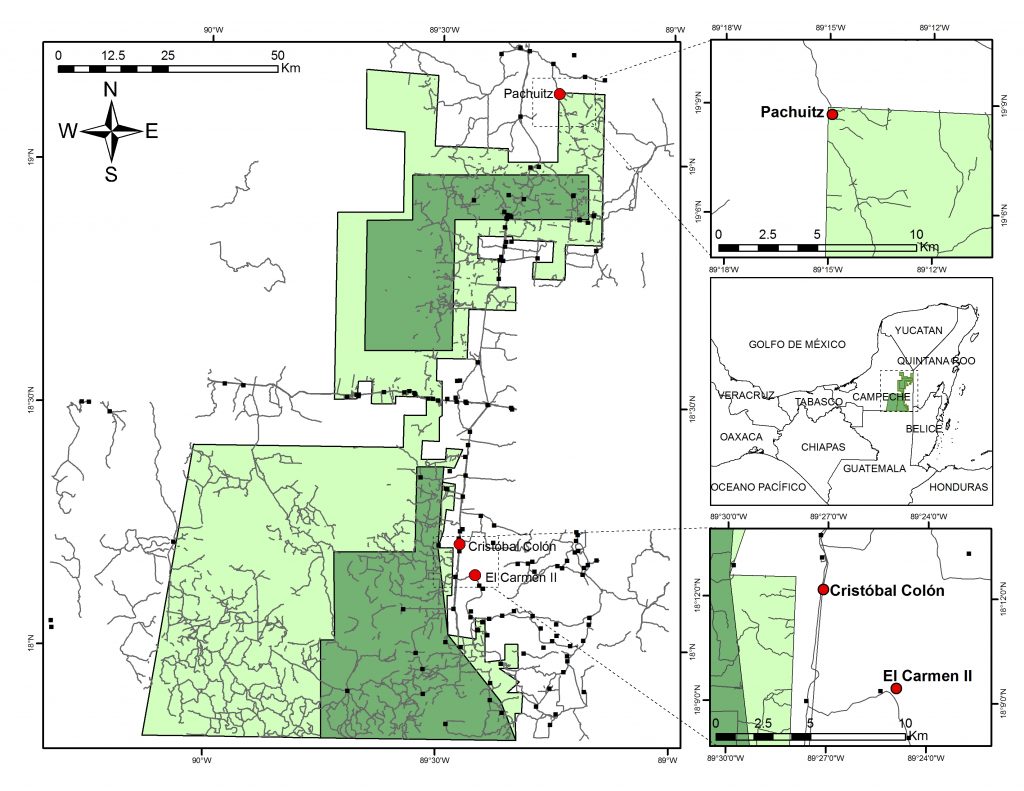Rund 60 km südlich von Xpujil (sprich „Ischpuchil“) befindet sich das Dorf El Carmen II (sh. Abbildung). Maya Ch’oles aus Chiapas, die in den 70er Jahren hier angesiedelt wurden, leben in diesem Dorf und sprechen ihre eigene indigene Sprache. Die Siedlung liegt nahe der Pufferzone des Biosphärenparks Calakmul, wo nicht selten ein Jaguar vorbeischaut, um einen Truthahn zu ergattern. Ein halbes Jahr bevor ich meine Hütte am Dorfrand bezog, wurde vor meiner Haustür ein „Tigre“ erlegt … aber das ist eine andere Geschichte.